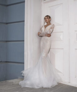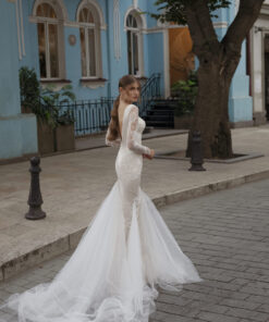 Efeito romântico! O vestido de noiva de linha A brilhante é um design de princesa, preparado com uma renda completa bordada com joias brilhantes. Enquanto o decote romântico proporciona uma postura impecável, a saia condessa revela a magreza de sua cintura. Com mangas compridas bufantes translúcidas para um toque romântico e uma magnífica saia esvoaçante feita de tule em camadas. Ela é uma obra de arte requintada, completada com um lindo botão de pérola nas costas.