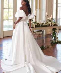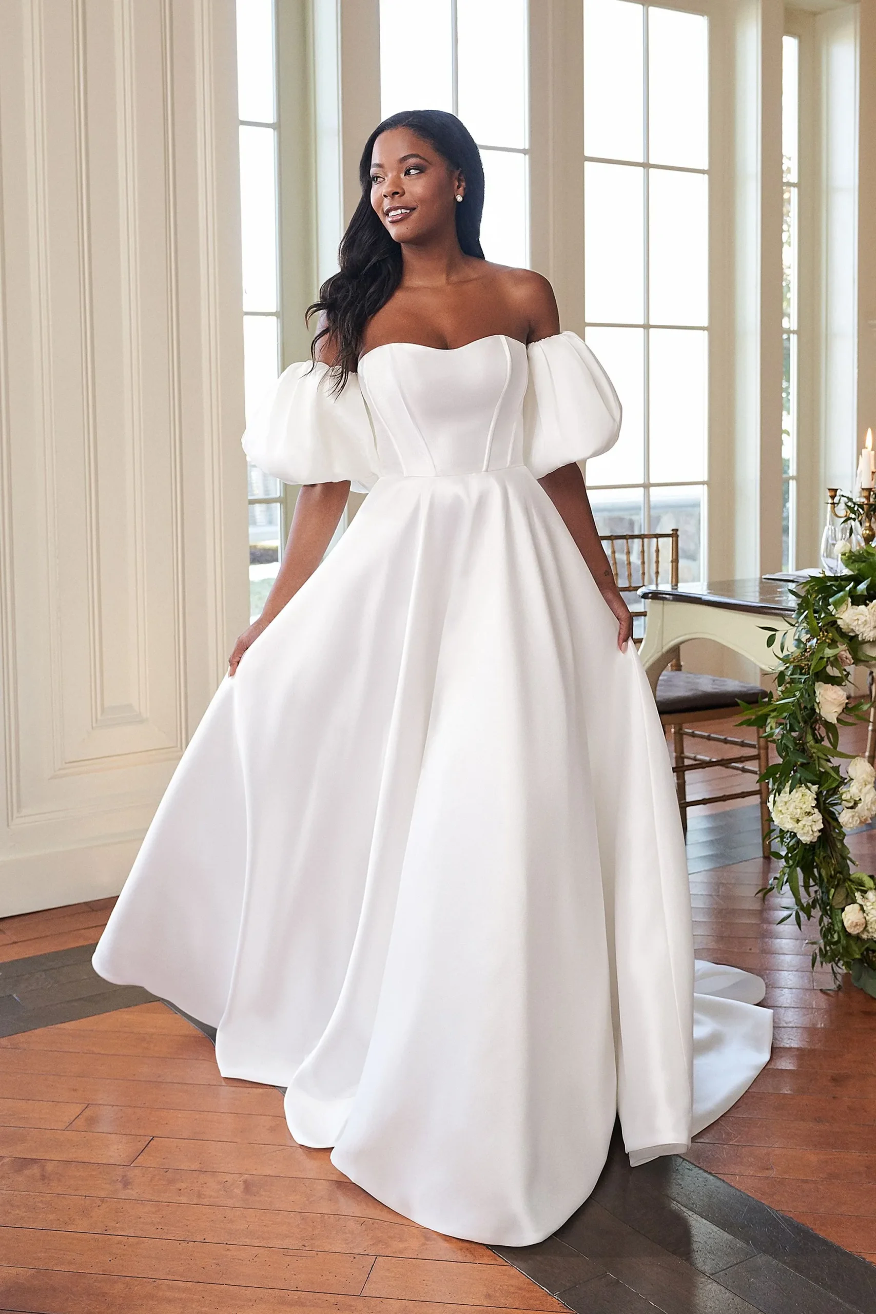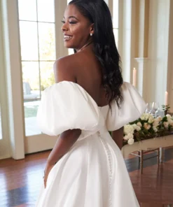 Exiba seu estilo com essas mangas bufantes off-the-shoulder em Mikado. Combinadas com um vestido de noiva simples, elas vão instantaneamente elevar o seu visual.